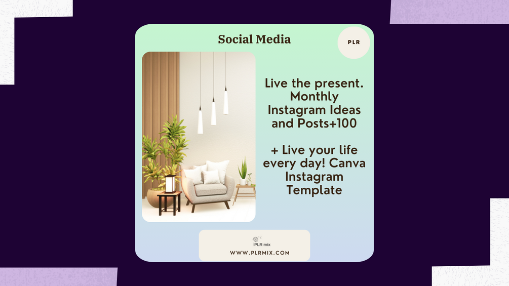 Live the present. Monthly Instagram Ideas and Posts+100 is a product that provides more than 100 ideas, captions, and hashtags for Instagram posts. The product is a PLR (Private Label Rights) product, meaning that it can be customized and branded as your own.